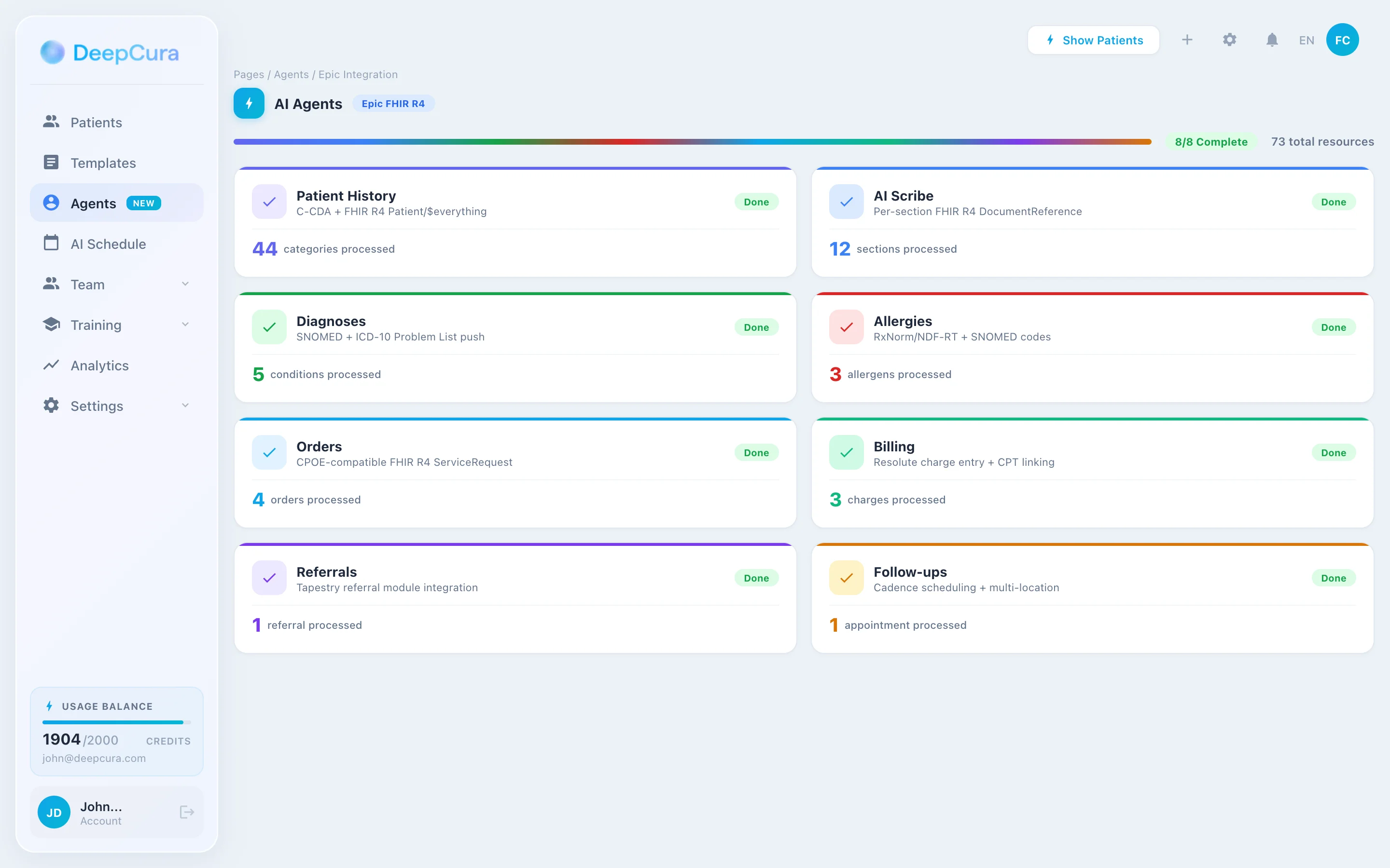 Start with a free trial to see all 8 agents in action with your own Epic environment. No credit card required. Sign up at app.deepcura.com/register.